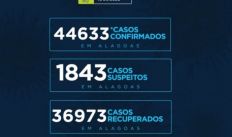 Alagoas tem 44.633 casos da Covid-19 e 1.264 óbitos