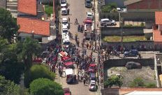 Bombeiros e equipes do Samu estão no local; o helicóptero da PM sobrevoa a escola