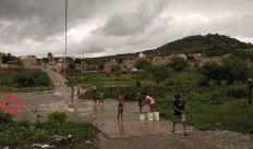 Água com correnteza chegou hoje por volta das 5h ao trecho do rio que passa por Santana do Ipanema; criança estava com outras tomando banho