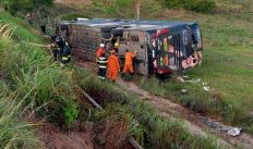 Veículo saiu da pista e tombou a margem da BR-101, em São Sebastião