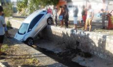 Carro cai dentro de canal após motorista perder controle da direção ao tirá-lo da garagem