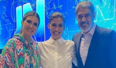 Fátima Bernardes posa com Bonner nos bastidores do JN e detalhe chama atenção