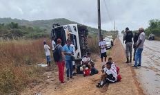 Micro-ônibus com atletas delmirenses tomba na AL-220 em São José da Tapera