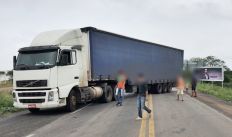 Manifestantes utilizam galhos e pneus para interditar tráfego de veículos na rodovia federal