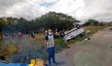 Van capota ao passar por buraco e deixa 10 passageiros feridos em São José da Tapera