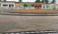 Vídeos mostram grande volume de água em ruas do município de Major Izidoro