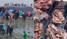 Moradores fazem churrasco com carne de baleia que morreu ao encalhar em praia na BA