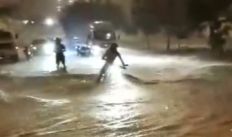 Por pouco, homem não é levado por correnteza durante forte chuva em Delmiro Gouveia