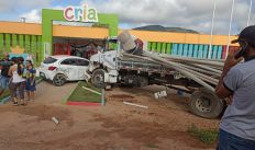 Caminhão desgovernado atinge carro e frente de creche a margem de rodovia em Inhapi