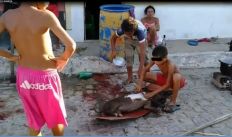 Animal é abatido com crueldade e sem condições sanitárias no meio da rua em Inhapi