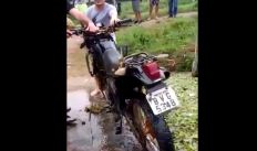 PMs e moradores encontram motocicleta dentro de açude em Jacaré dos Homens