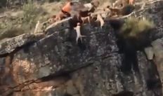 Um veado e 12 cães caem de precipício durante caça na Espanha; veja vídeo