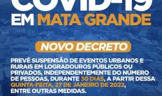 Aumento de casos de Covid-19 faz prefeitura de Mata Grande cancelar eventos por 30 dias
