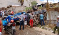 Para não atingir residência ou atropelar alguém, motorista jogou veículo carregado com lenha contra muro