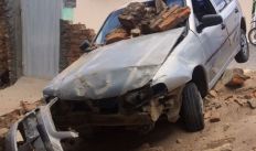 Carro de passeio fica sem freios e atinge muro de residência em Mata Grande