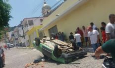 Carro capota após ficar sem freios em ladeira no centro da cidade de Mata Grande