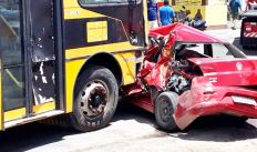 Ônibus escolar fica sem freios, atinge veículos e deixa uma pessoa ferida em Santana