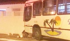 Ônibus com placa de Maceió fica sem freios e bate em muro de residência em Delmiro Gouveia