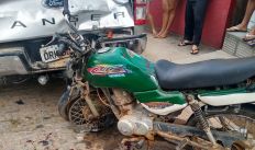 Moto fica sem freios, bate em caminhonete e deixa casal ferido em Mata Grande