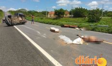 Carro de funerária capota após motorista desviar de animal na pista em Delmiro Gouveia