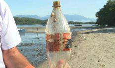 Garrafa plástica comemorativa da Copa de 98 é achada na Baía de Guanabara