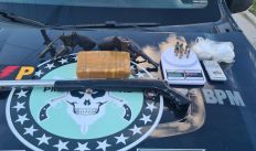 Homens foram encontrados com droga e armas de fogo que podem ter sido utilizadas no crime