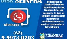 População de Piranhas poderá solicitar serviços da Infraestrutura através do Whatsapp