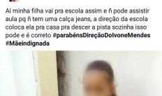 Mulher denuncia que filha de 8 anos foi mandada embora da escola porque não usava jeans