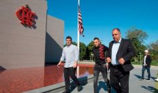 Torcedores do Flamengo protestam em frente ao Ninho do Urubu e cercam carros de jogadores