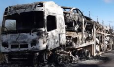 Incêndio destrói caminhão-cegonha carregado com 11 carros novos no norte da Bahia