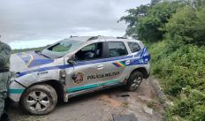 Viatura da PM/PE capota após desviar de cavalo em trecho da BR-423 em Água Branca