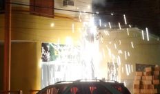 Hóspedes tiveram que sair depois que fogo atingiu caixa onde fica o medidor de energia do imóvel, no Centro da cidade; Polícia Militar e Samu