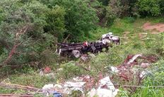 Enquanto caia veículo capotou várias vezes. Corpo do motorista foi lançado para fora da cabine