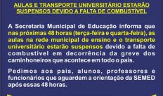 Devido à falta de combustível que afetou a nossa região, em decorrência da greve dos caminhoneiros