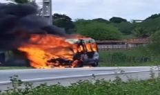 Van de transporte de passageiros pega fogo na rodovia AL-130 em Olho D'água das Flores