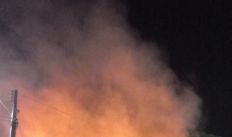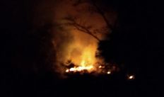 Fogaréu de grande proporção avança pelo mato seco de fazenda e outras propriedades