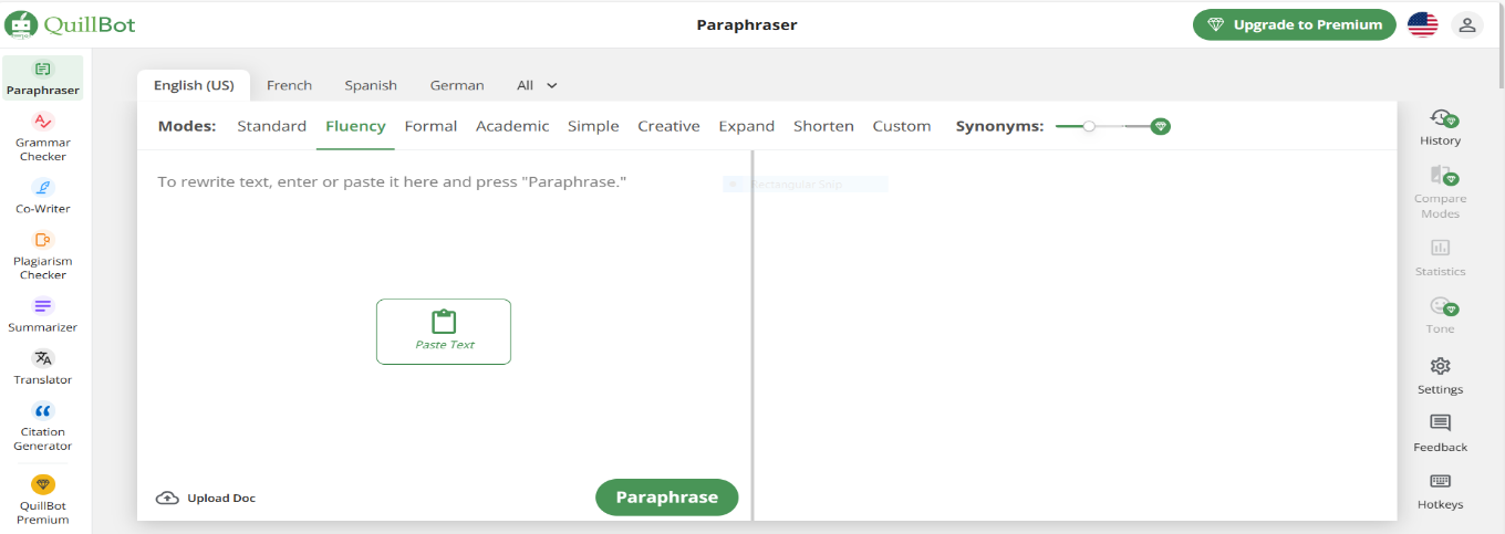 A melhor coisa sobre esta ferramenta é que ela possui limites de contagem de palavras muito extensos. Nenhuma ferramenta de reformulação de IA oferece limite de contagem de mais de 3.000 palavras para reformulação, mas o Paraphrase Online oferece.