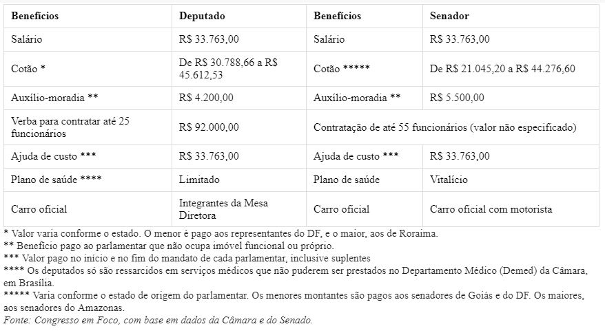 Segundo reportagem do Congresso em Foco, de 15.01.2018, o Congresso brasileiro é um dos mais caros do mundo. Veja o quadro sinótico abaixo.