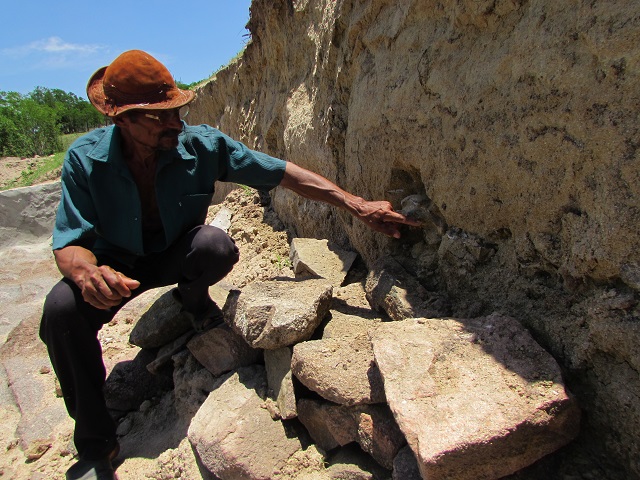 Seu José Santos e dona Maria dos Prazeres seguram partes dos fósseis que eles encontraram. Foto: Diego Barros