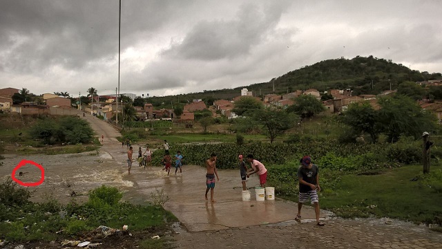 No lado esquerdo da imagem: criança sofre afogamento no meio da correnteza do rio Ipanema. Foto: Cortesia de André Henrique