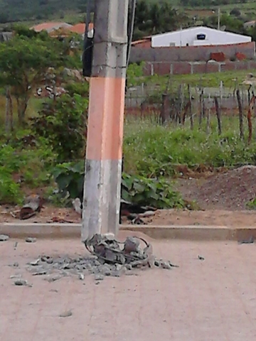 “A estrutura do poste ficou muito danificada, pode cair a qualquer momento. Praticamente está segurado pelos fios”, disse um morador que preferiu não ser identificado.