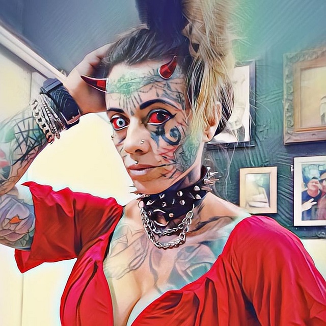 Ela afirma que tem orgulho pelo apelido e que chifres são suas modificações corporais preferidas