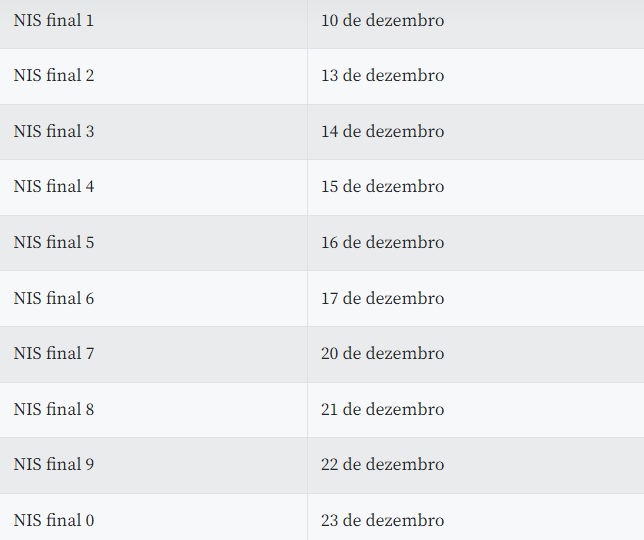 O calendário de recebimento segue o padrão do antigo Bolsa Família, e usa o último dígito do NIS para definir a data do crédito. Confira abaixo a tabela atualizada: