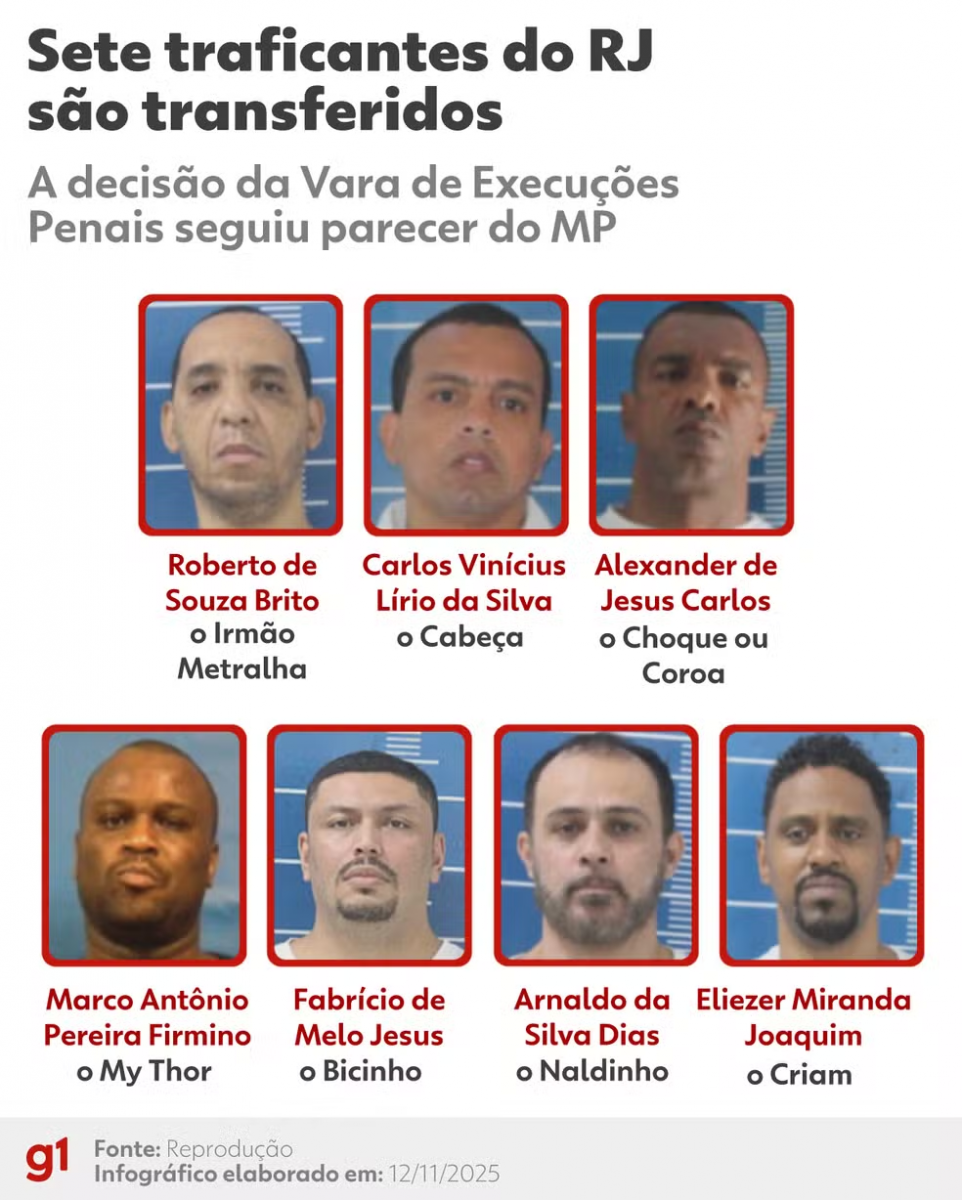 De acordo com o governo fluminense, os presos integram a cúpula da facção, e a transferência faz parte de uma estratégia para enfraquecer a comunicação entre líderes e demais integrantes do grupo criminoso.