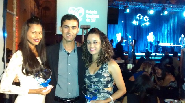 | Jornalistas Daniele Soares e Wanessa Santos ao lado do jornalista Diego Barros, um dos coordenadores do Correio Notícia, após receberem a premiação (Foto - Correio Notícia) |