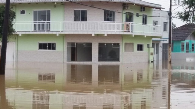 Casas foram alagadas e alguns alagoanos que moram em Rio do Sul tiveram que ir para abrigos ou casas de parentes. Foto: Reprodução/Whatsapp