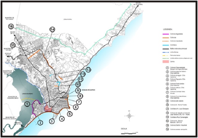 O mapa abaixo contém a localização e o tipo de estrutura cicloviária do que já existe na capital alagoana, com exceção da recém-inaugurada na Avenida Josepha de Mello.