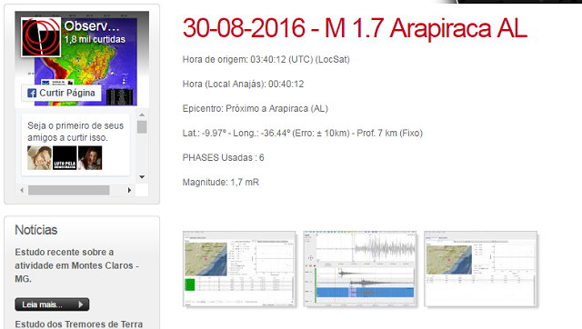 Observatório Sismológico confirma o 10° tremor de terra no interior de Alagoas em 2016