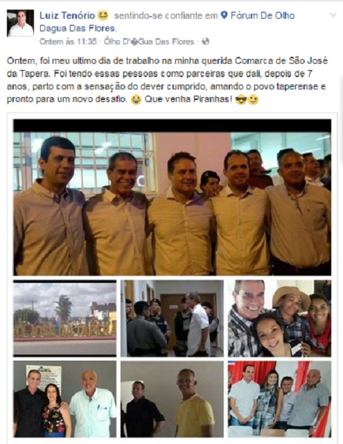 Promotor Luiz Tenório deixa São José da Tapera e vai trabalhar em Piranhas. Foto: Reprodução/Internet