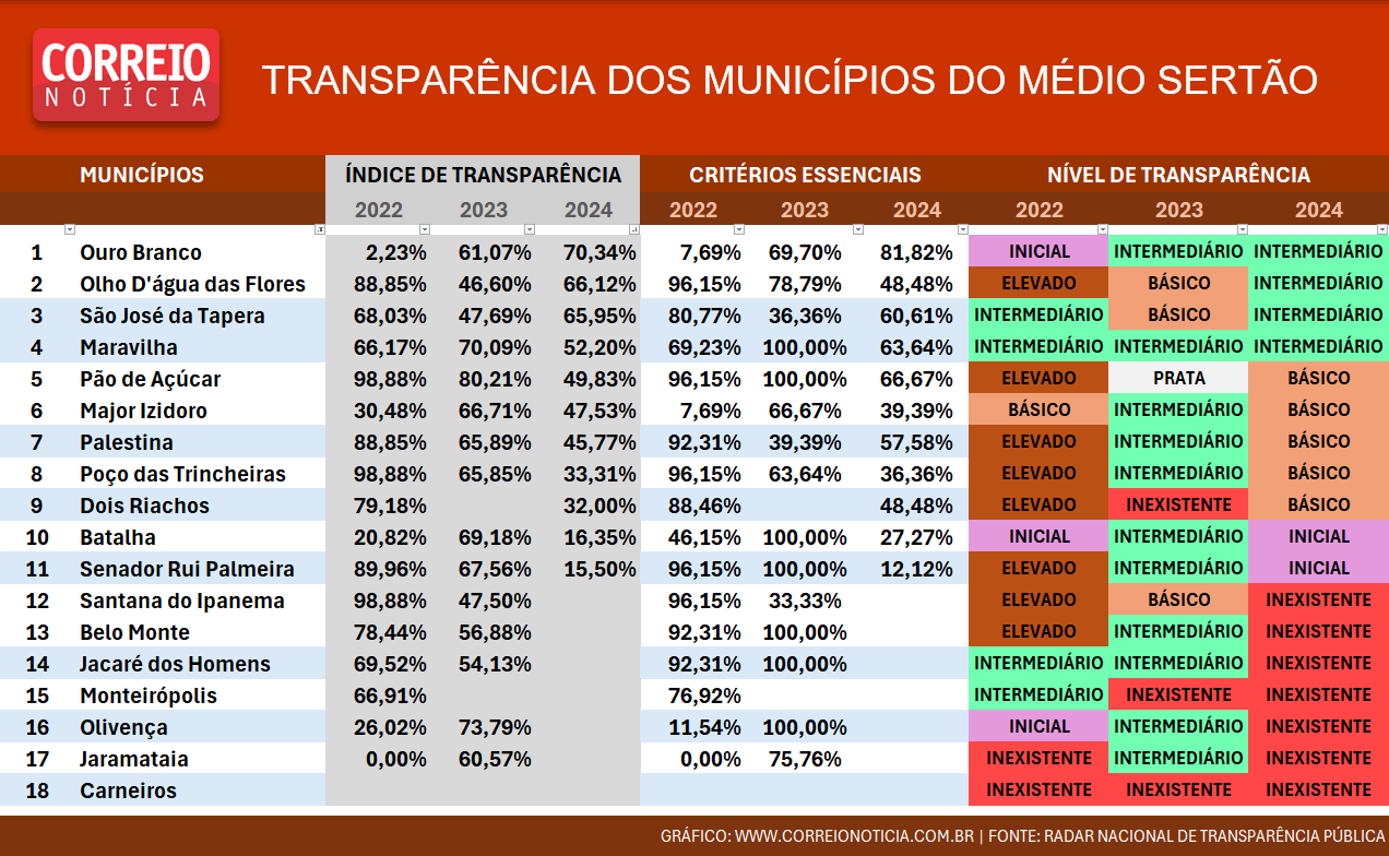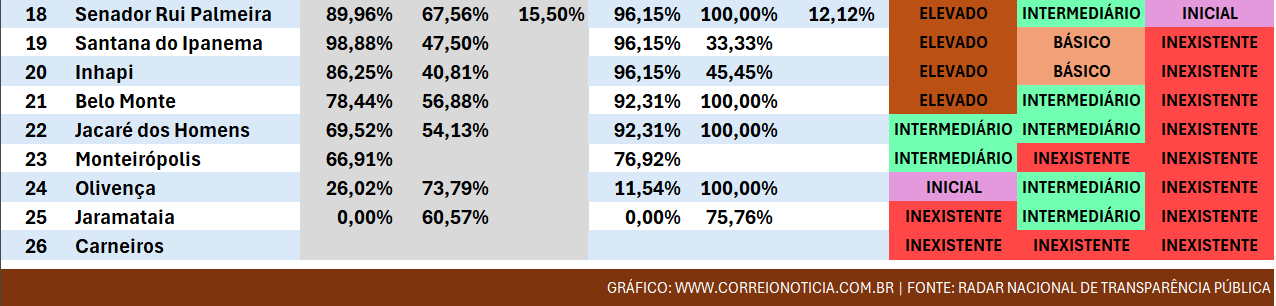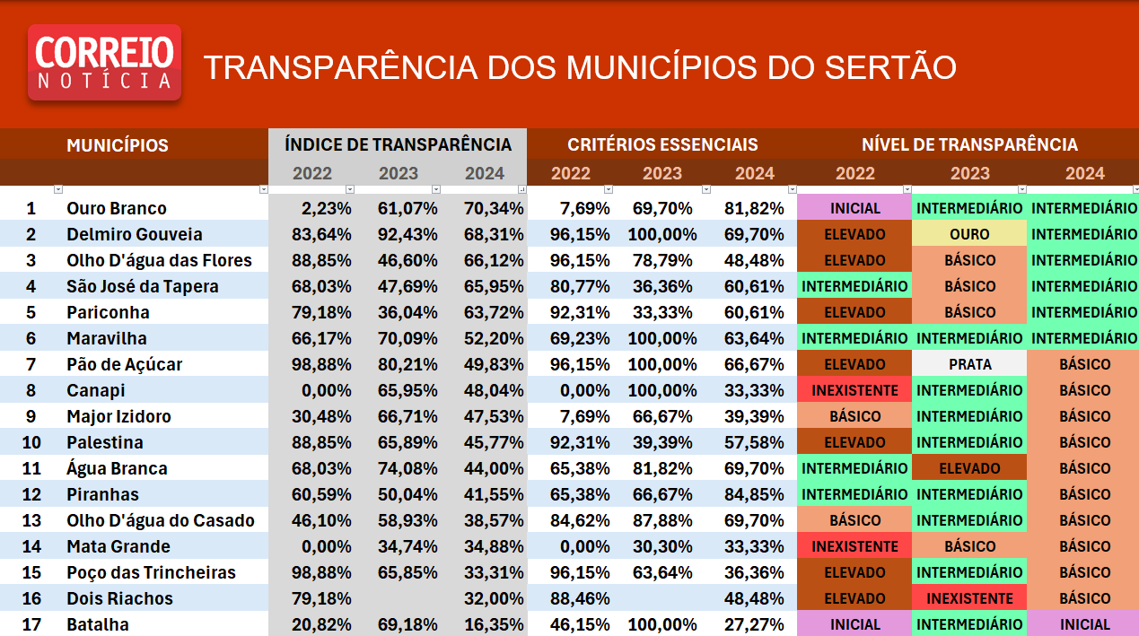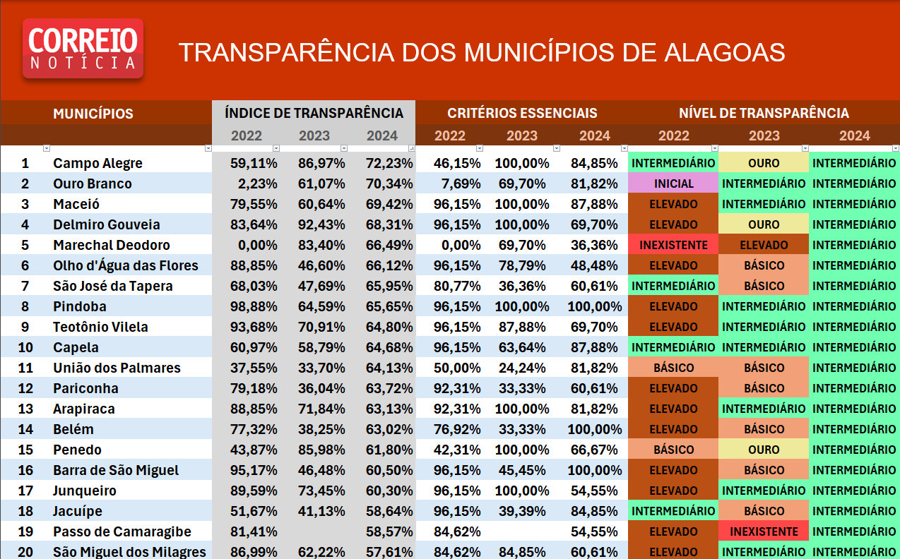 Veja ranking das prefeituras mais transparentes e as piores em transparência de Alagoas